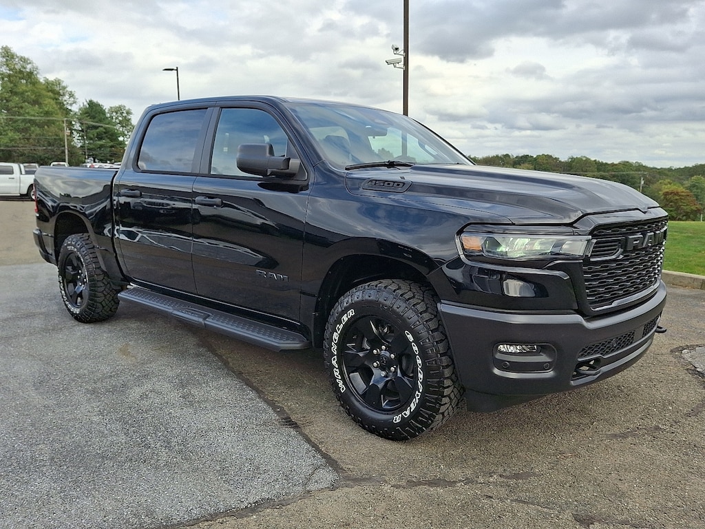 "Experience the power and versatility of the 2026 Ram 1500 Warlock Crew Cab 4x4. This robust pickup is designed for those who demand both performance and style. Featuring a striking Diamond Black Crystal Pearlcoat exterior paired with a sleek black interior, the Ram 1500 Warlock is sure to turn heads wherever you go. Under the hood, you'll find a formidable 3.0L I-6 gasoline engine equipped with direct injection and twin-turbo technology, delivering an impressive 420 horsepower. This advanced engine is engineered for efficiency and power, making it perfect for both daily commutes and rugged off-road adventures. The 5'7"" box provides ample cargo space, ensuring you can transport everything from tools to outdoor gear with ease. With its crew cab design, you'll enjoy spacious seating for family and friends, combining comfort with functionality. Whether navigating urban landscapes or tackling tough terrains, the 2026 Ram 1500 Warlock Crew Cab 4x4 stands out as the ultimate truck for those who refuse to compromise. Discover the blend of strength, technology, and style in this exceptional vehicle today!"