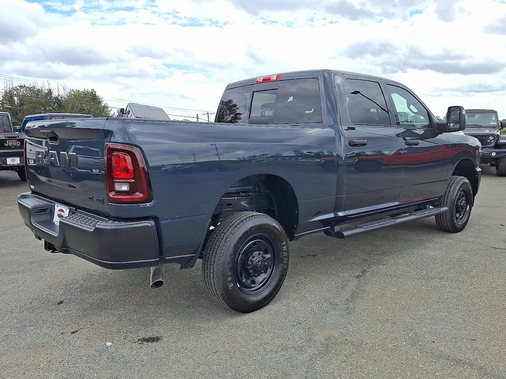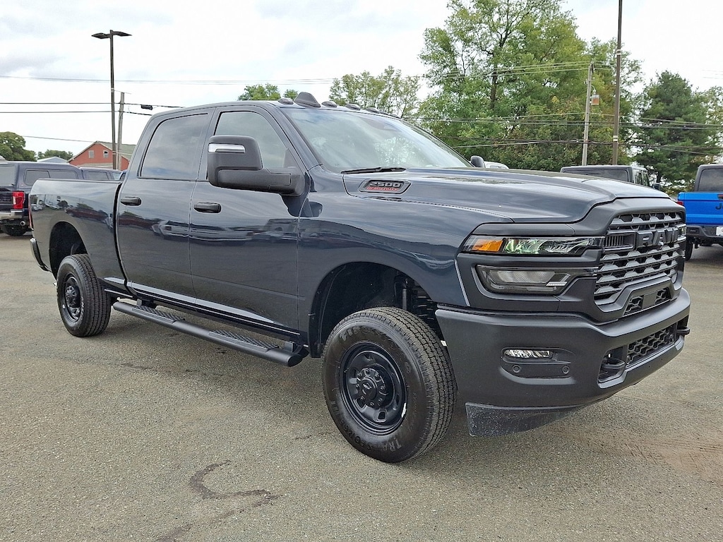 "Introducing the 2026 Ram 2500 Tradesman 4x4 Crew Cab, a powerful workhorse designed to elevate your driving experience. This robust pickup features a striking Forged Blue Metallic exterior, perfectly paired with a sleek black interior that offers both functionality and style. At the heart of the Tradesman is a formidable 6.4L HEMI V8 engine, delivering an impressive 405 horsepower with advanced Variable Valve Timing (VVT) and cylinder deactivation for optimized fuel efficiency. With its 4x4 capability, the Ram 2500 is built to tackle any terrain, whether you're on the job site or exploring the great outdoors. The spacious Crew Cab configuration ensures ample room for passengers and cargo, making it ideal for both work and play. Plus, the rugged 6'4"" box provides the versatility you need for hauling equipment or gear. Experience the unmatched combination of power, durability, and comfort that the 2026 Ram 2500 Tradesman has to offer. Discover why this truck is a leader in its class and schedule a test drive today!"